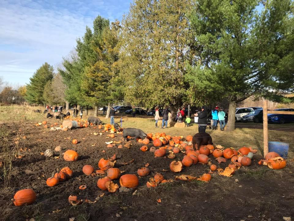 Our pigs are fed a local diet, of our pasture grass, our neighbor’s hay in the winter, and locally raised barley for a balance of carbohydrates and protein. As available, we acquire brewer’s barley from a local brew pub, and make the most of seasonal produce that we can get in bulk, including pumpkins, carrots, and apples.